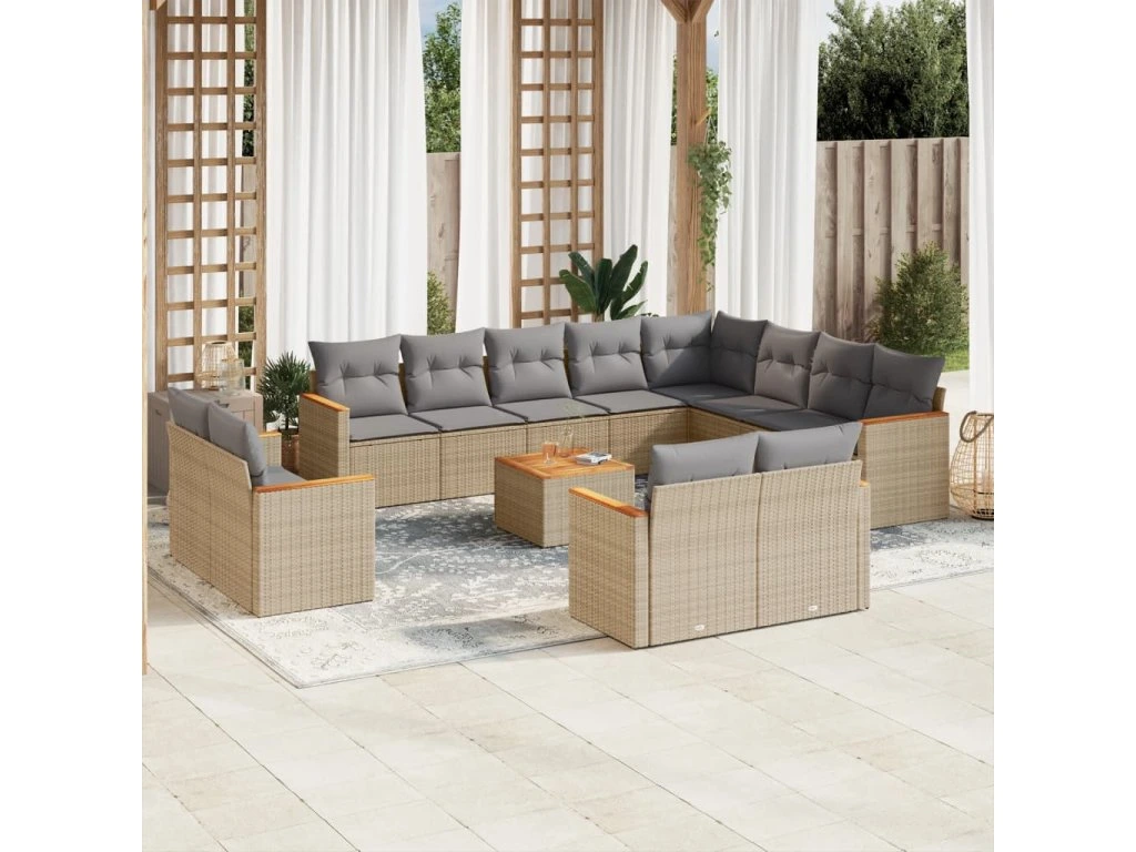 13dílná zahradní sedací souprava s poduškami béžová polyratan 3258923
