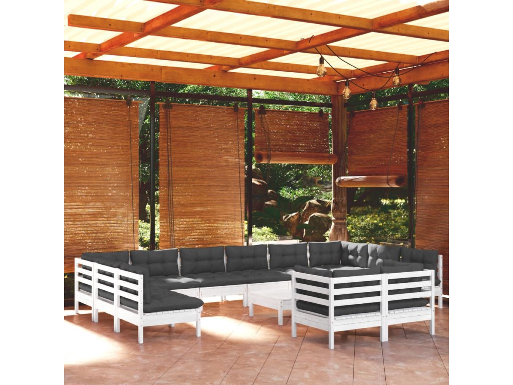 13dílná zahradní sedací souprava s poduškami bílá borovice 3097278