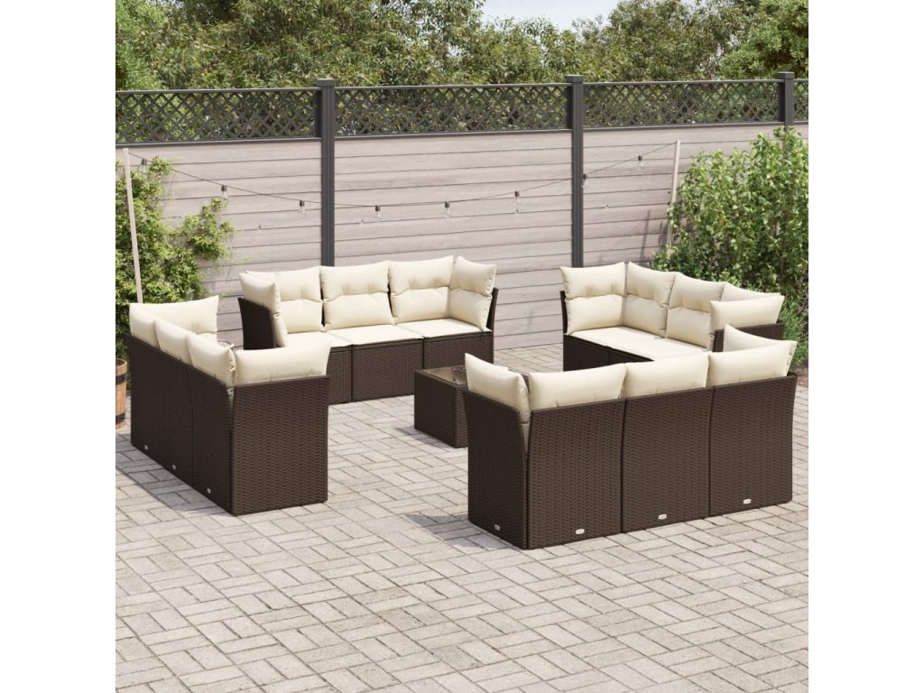 13dílná zahradní sedací souprava s poduškami hnědá polyratan 3249182