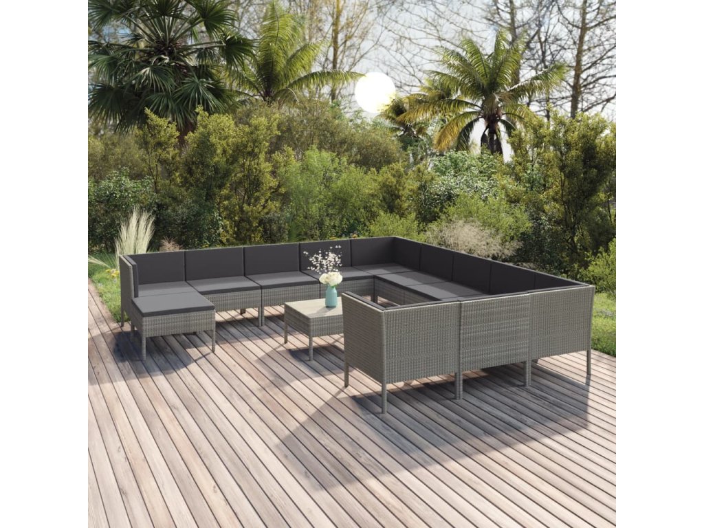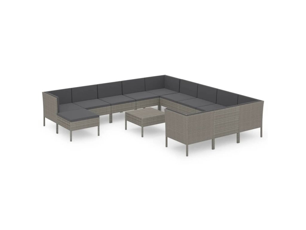 13dílná zahradní sedací souprava s poduškami polyratan šedá 3094530