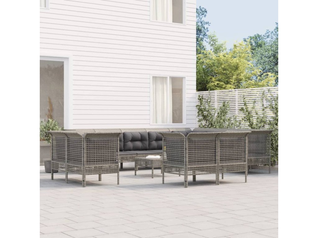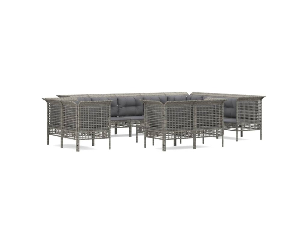 13dílná zahradní sedací souprava s poduškami šedá polyratan 3187588