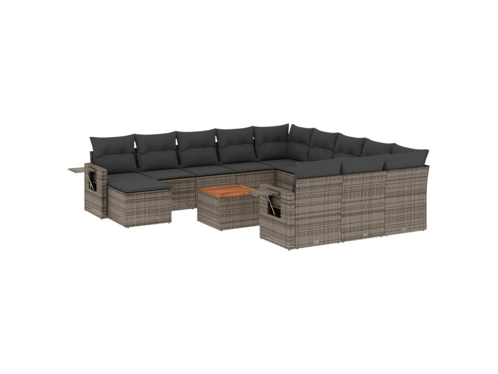 13dílná zahradní sedací souprava s poduškami šedá polyratan 3224870