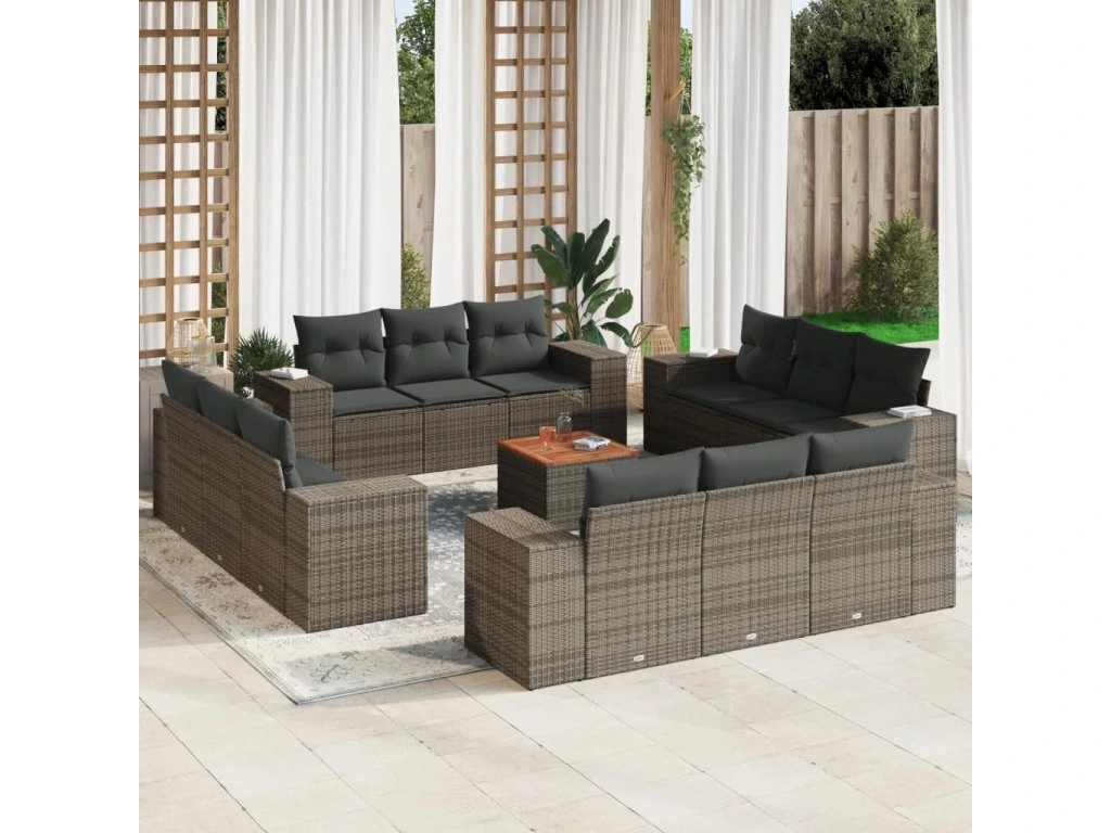 13dílná zahradní sedací souprava s poduškami šedá polyratan 3225381