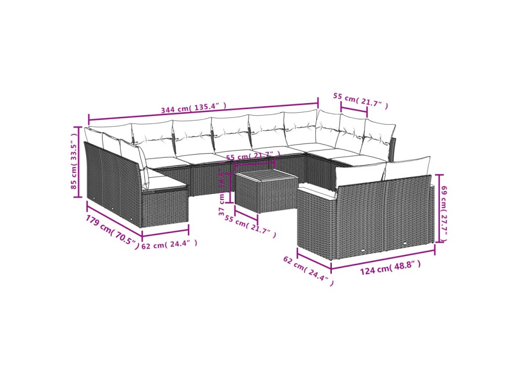 Tato zahradní sedací souprava je dokonalým doplňkem vaší zahrady, terasy nebo dvorku a poskytne vám pohodlné a příjemné místo, kde si můžete povídat s rodinou a přáteli nebo jen tak odpočívat a užívat si pobyt venku.