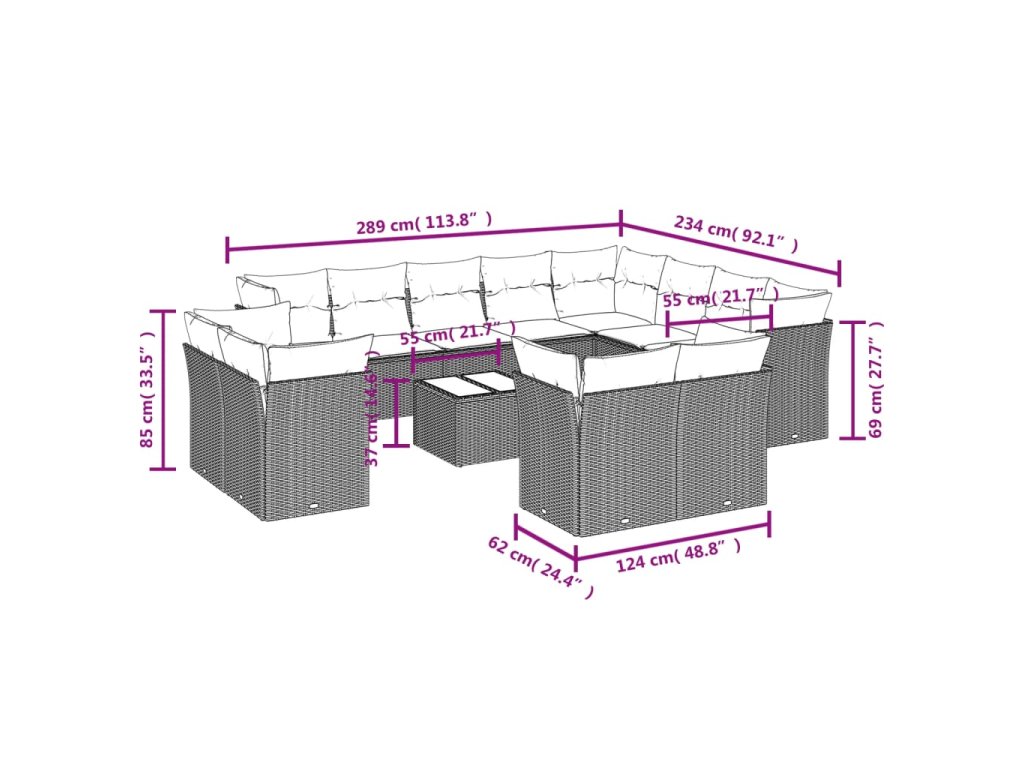 13dílná zahradní sedací souprava s poduškami šedá polyratan 3250379