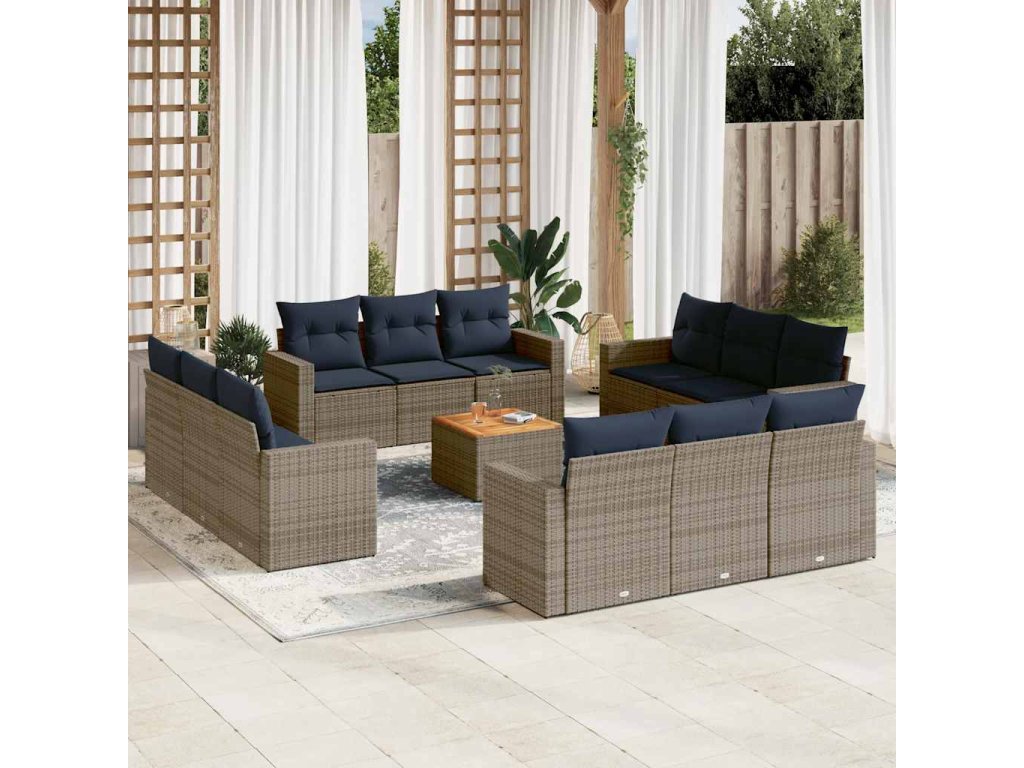 13dílná zahradní sedací souprava s poduškami šedá polyratan 3256390