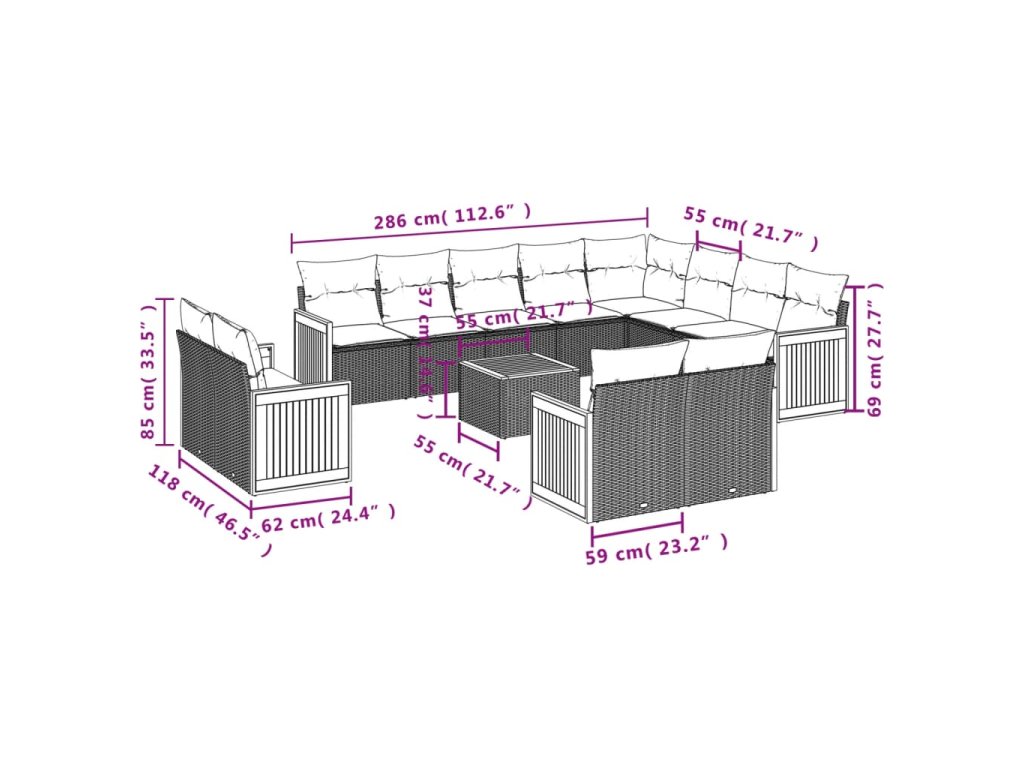 13dílná zahradní sedací souprava s poduškami šedá polyratan 3260605
