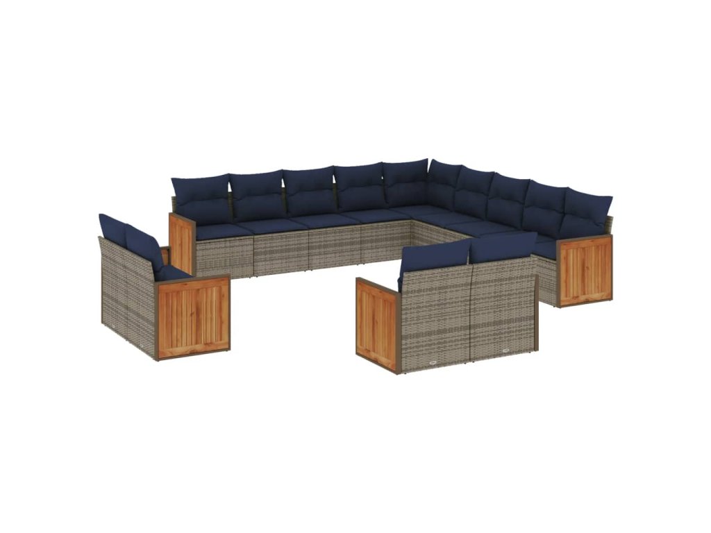 13dílná zahradní sedací souprava s poduškami šedá polyratan 3260612