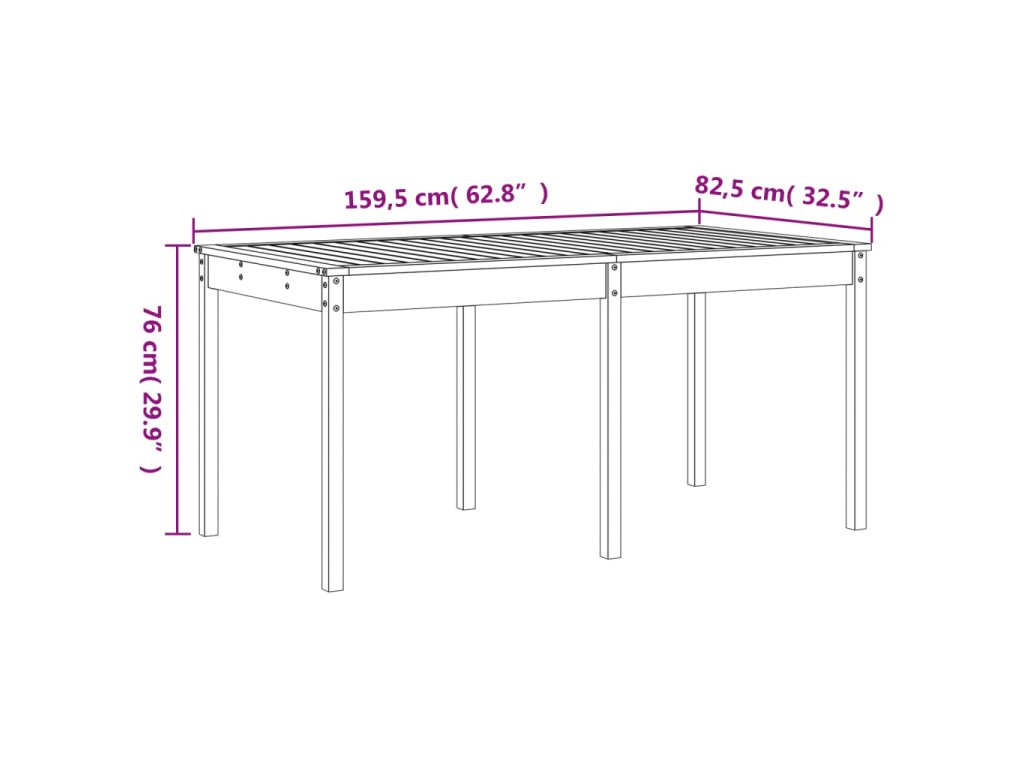 - Rozměry zahradního stolku: 159,5 x 82,5 x 76 cm (D x Š x V)