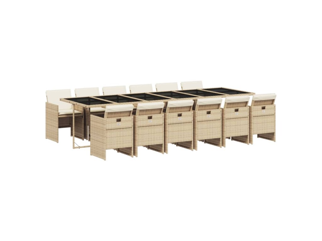 13dílný zahradní jídelní set s poduškami béžový polyratan 3210586