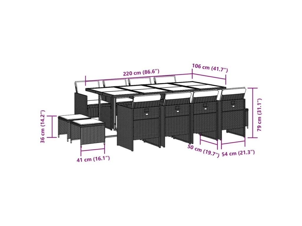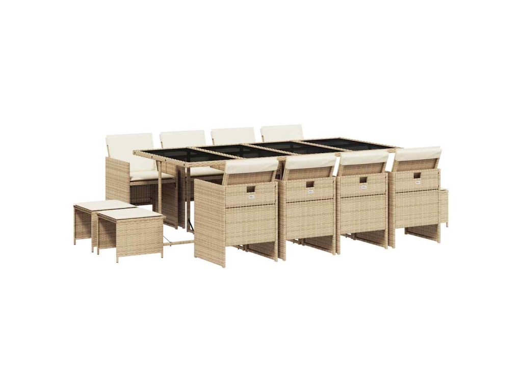 13dílný zahradní jídelní set s poduškami béžový polyratan 3210622
