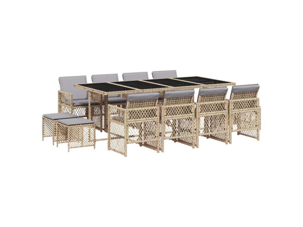 13dílný zahradní jídelní set s poduškami béžový polyratan 3210804