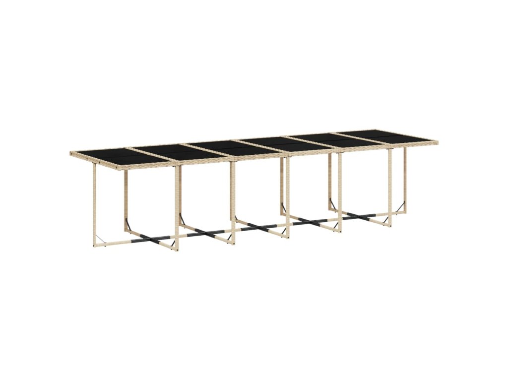 - Stabilní a snadno čistitelná stolní deska: Tento zahradní stůl má desku z tvrzeného skla, která je stabilní, odolná a snadno se čistí vlhkým hadříkem.