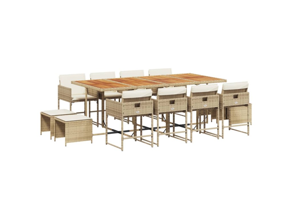 13dílný zahradní jídelní set s poduškami béžový polyratan 3211348