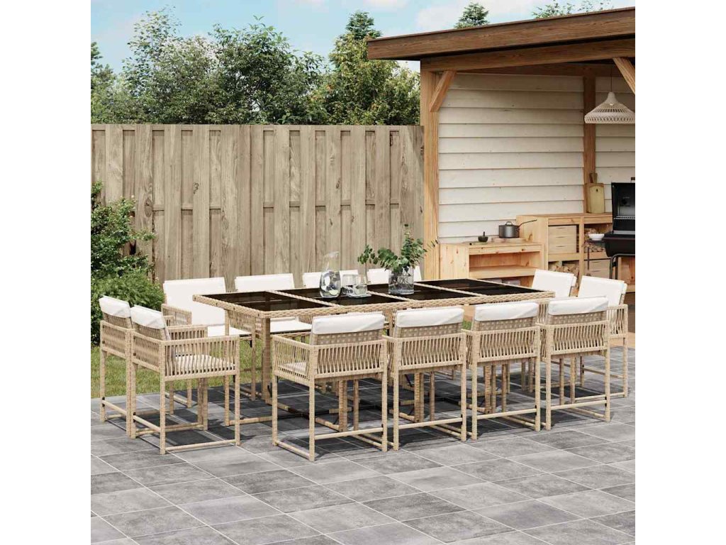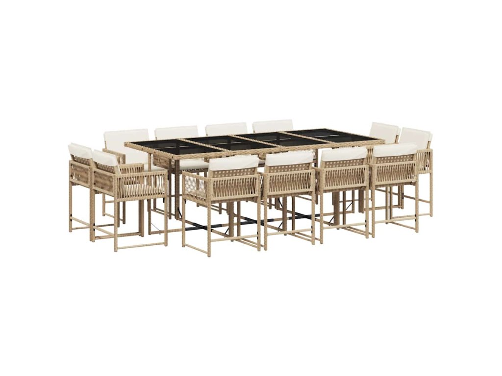 13dílný zahradní jídelní set s poduškami béžový polyratan 3211582