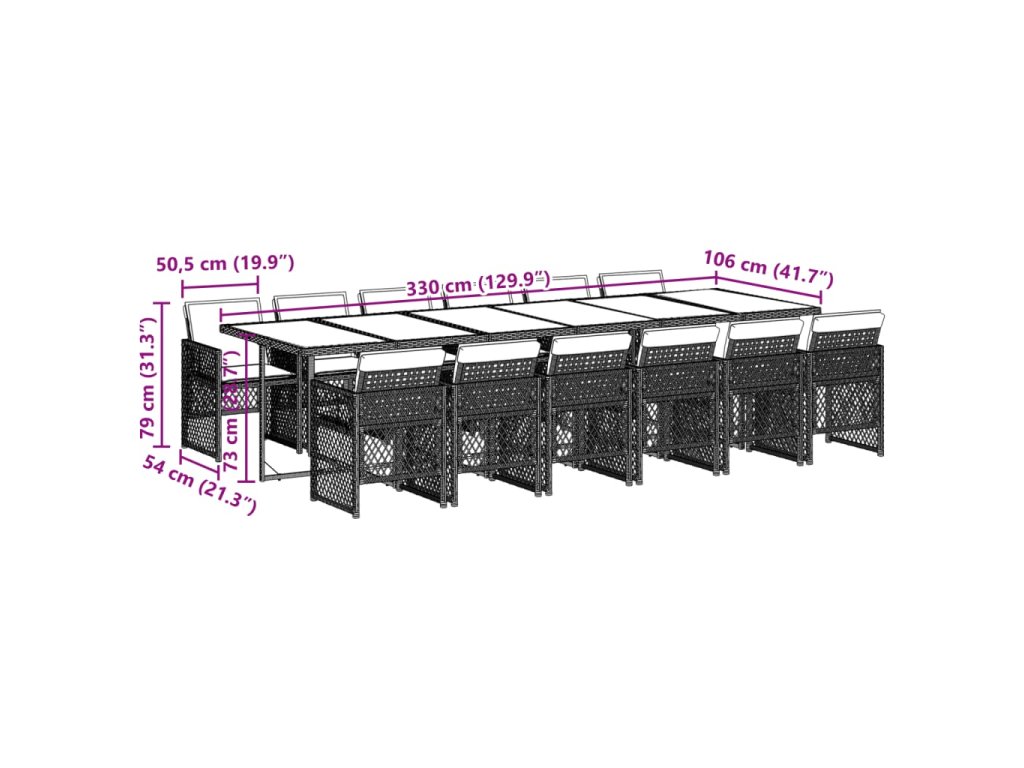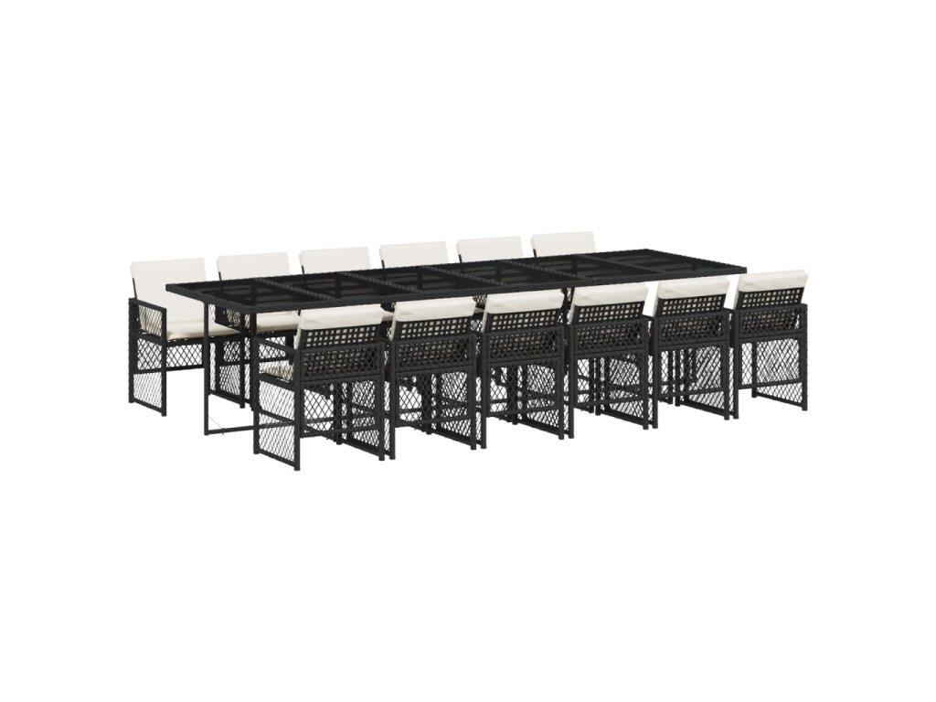 13dílný zahradní jídelní set s poduškami černý polyratan 3210762