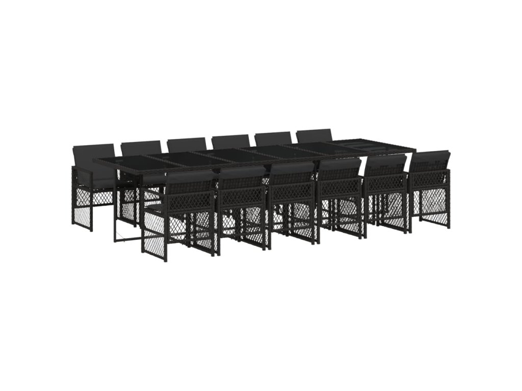 13dílný zahradní jídelní set s poduškami černý polyratan 3210763