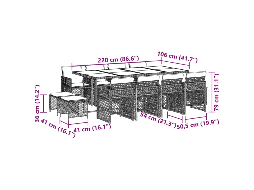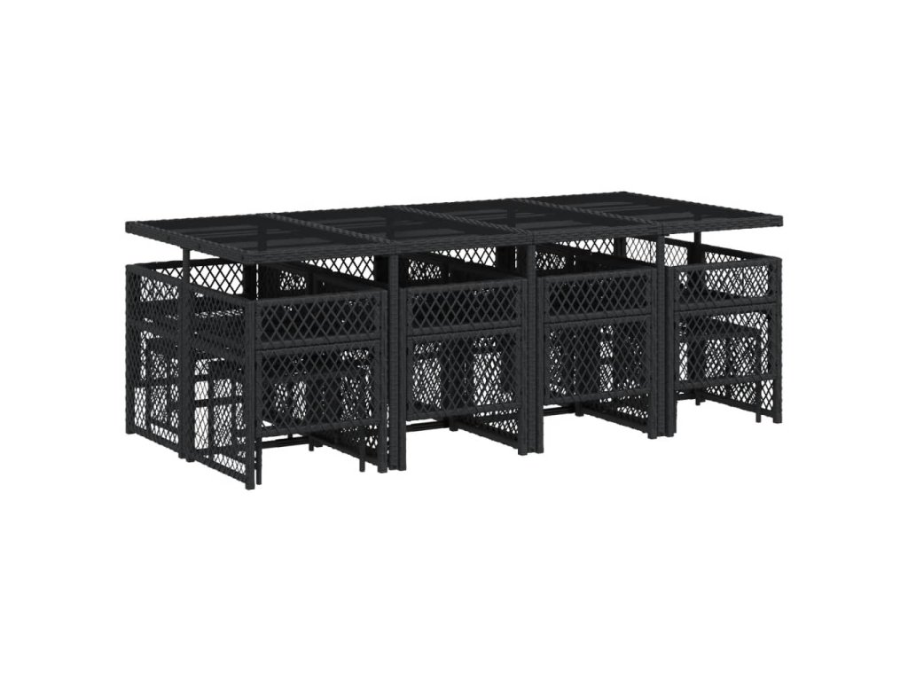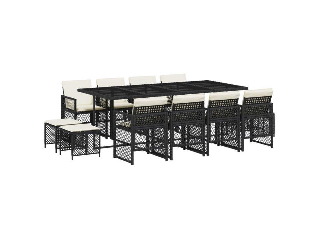 13dílný zahradní jídelní set s poduškami černý polyratan 3210798
