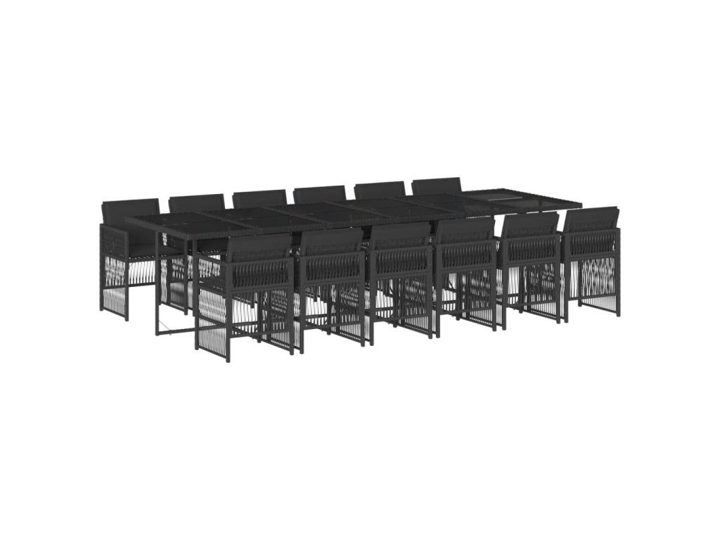 13dílný zahradní jídelní set s poduškami černý polyratan 3210943