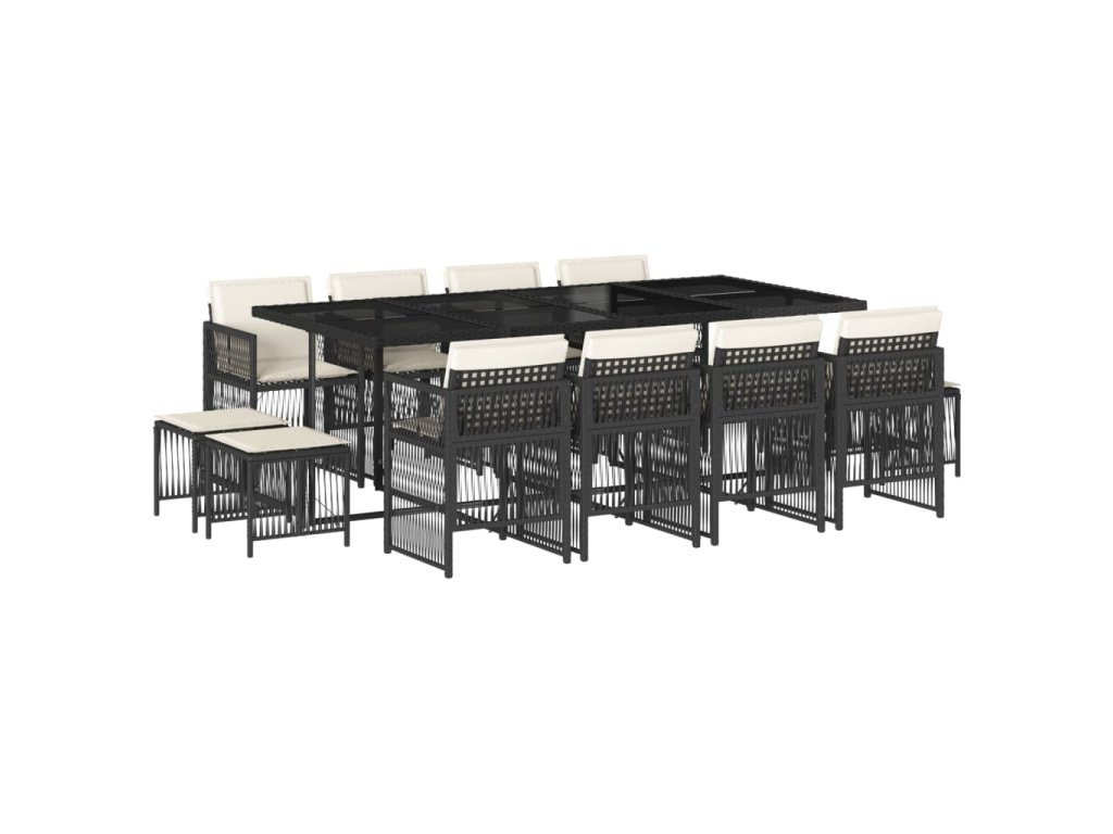 13dílný zahradní jídelní set s poduškami černý polyratan 3210978