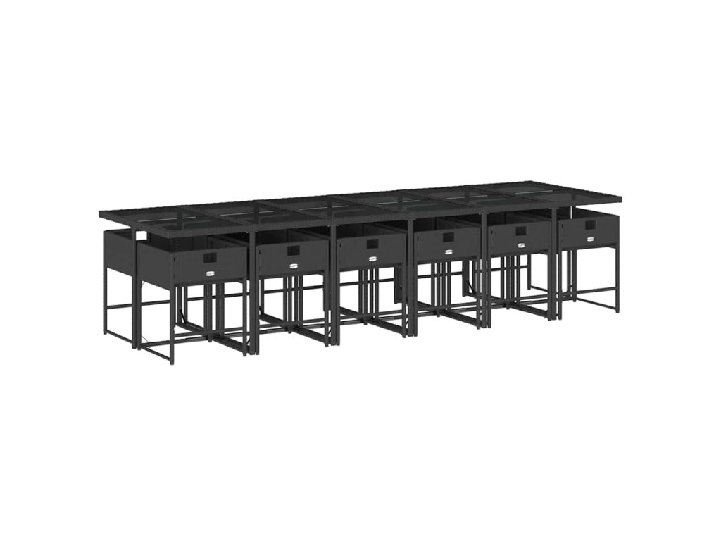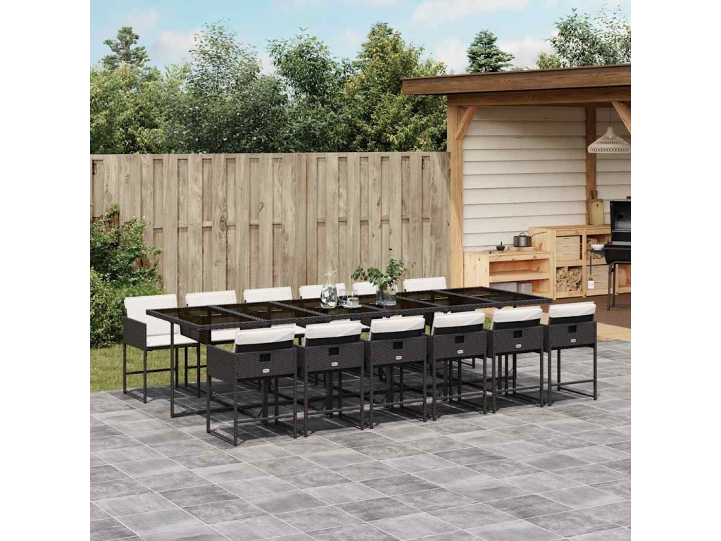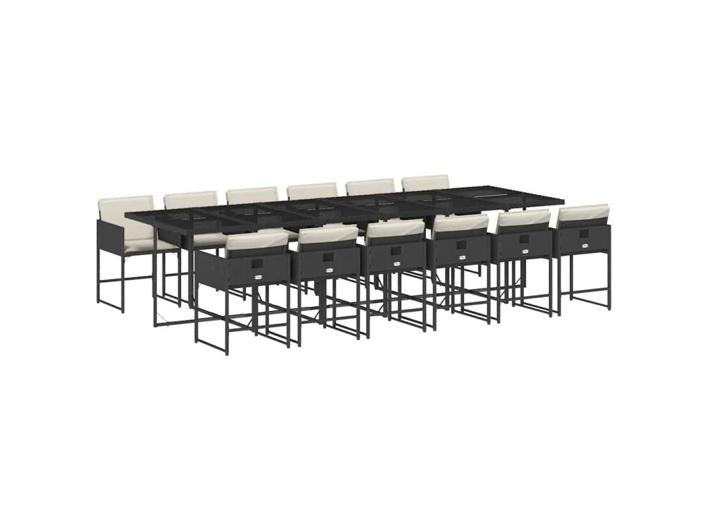 13dílný zahradní jídelní set s poduškami černý polyratan 3211302