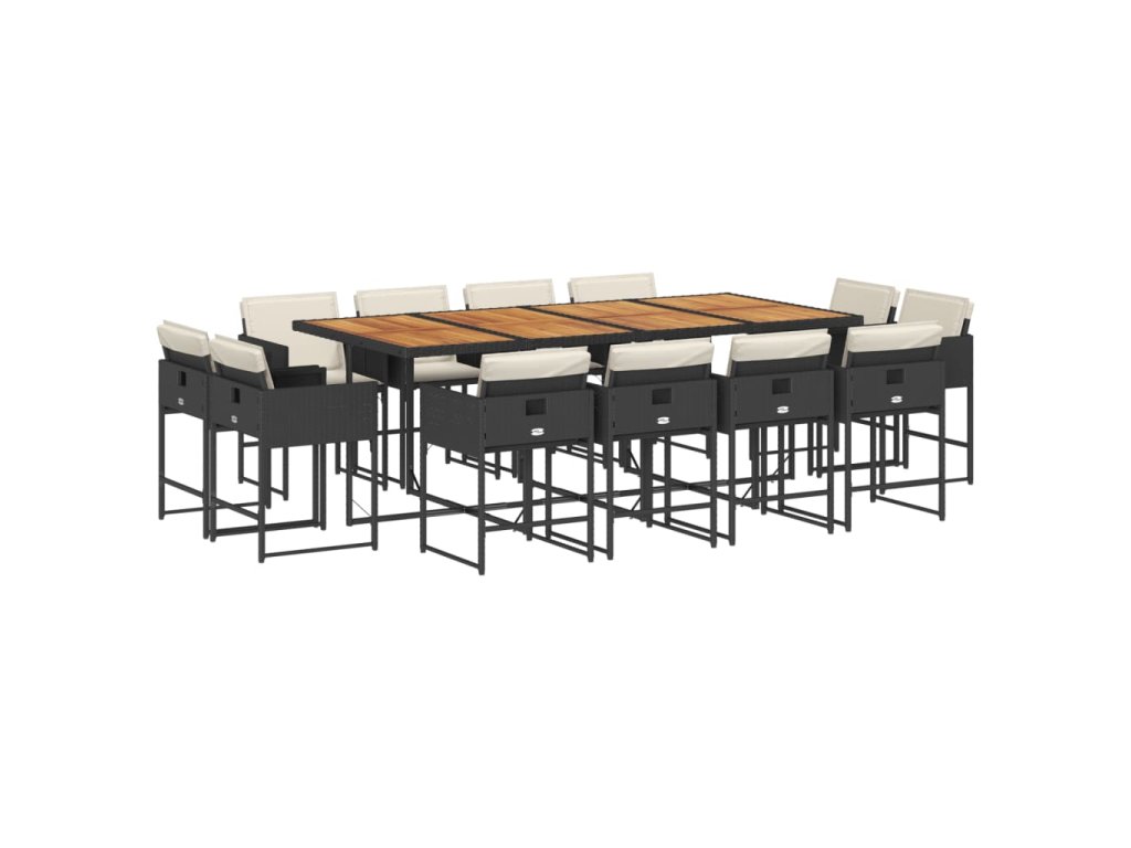 13dílný zahradní jídelní set s poduškami černý polyratan 3211407