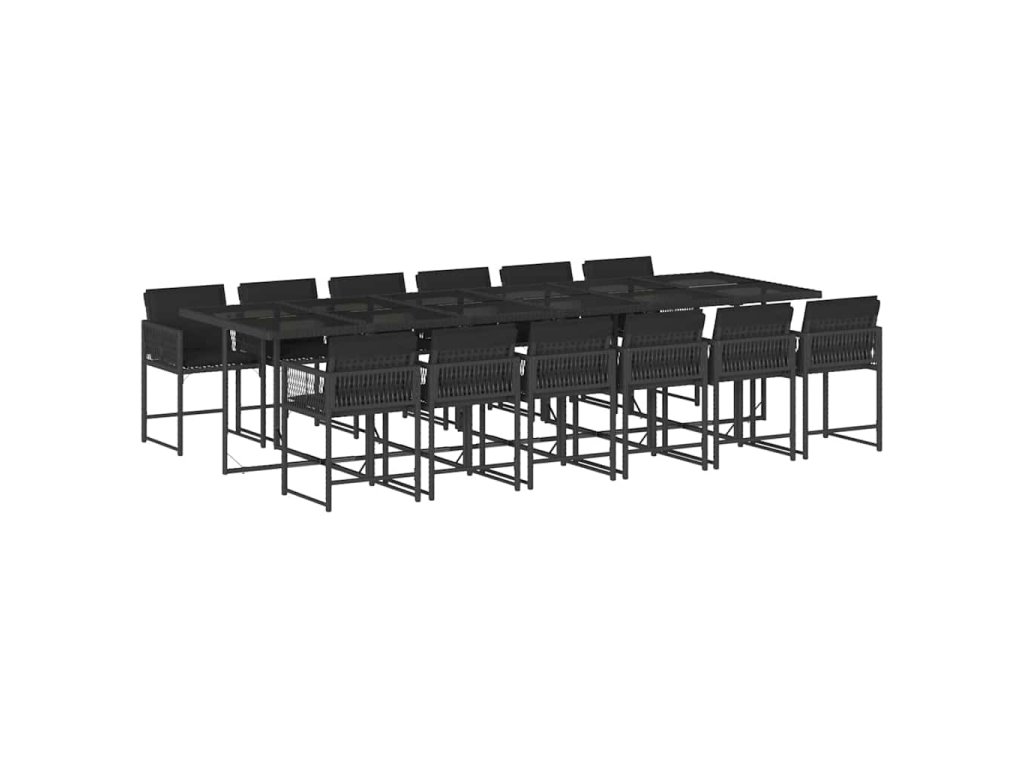 13dílný zahradní jídelní set s poduškami černý polyratan 3211483
