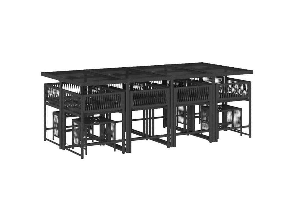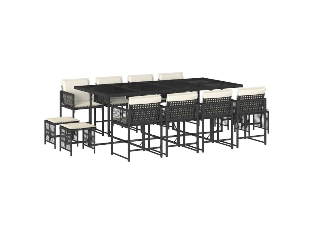13dílný zahradní jídelní set s poduškami černý polyratan 3211518