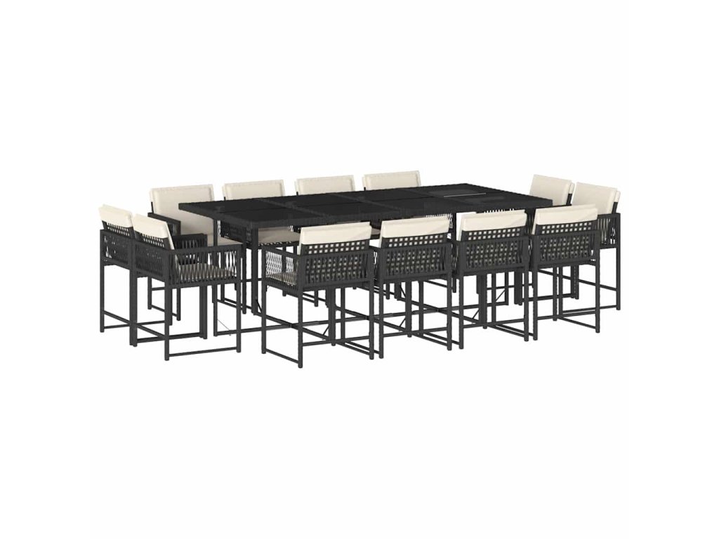 13dílný zahradní jídelní set s poduškami černý polyratan 3211578