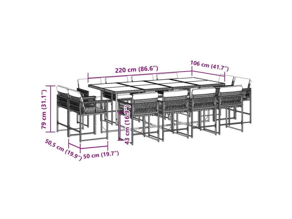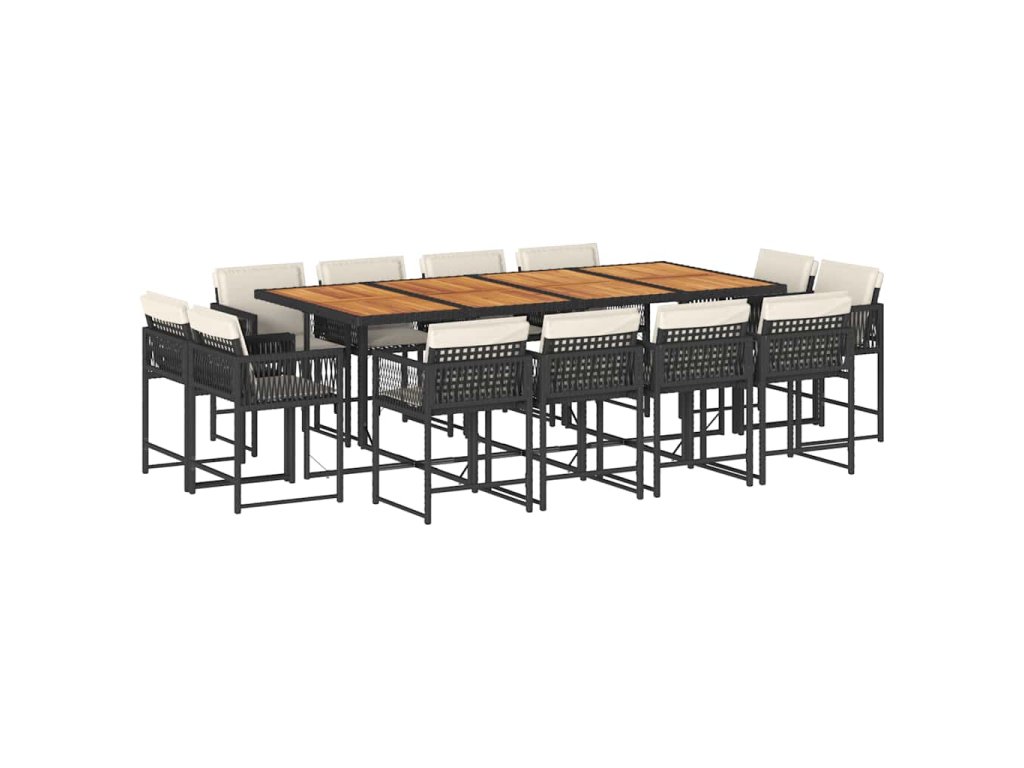 13dílný zahradní jídelní set s poduškami černý polyratan 3211587