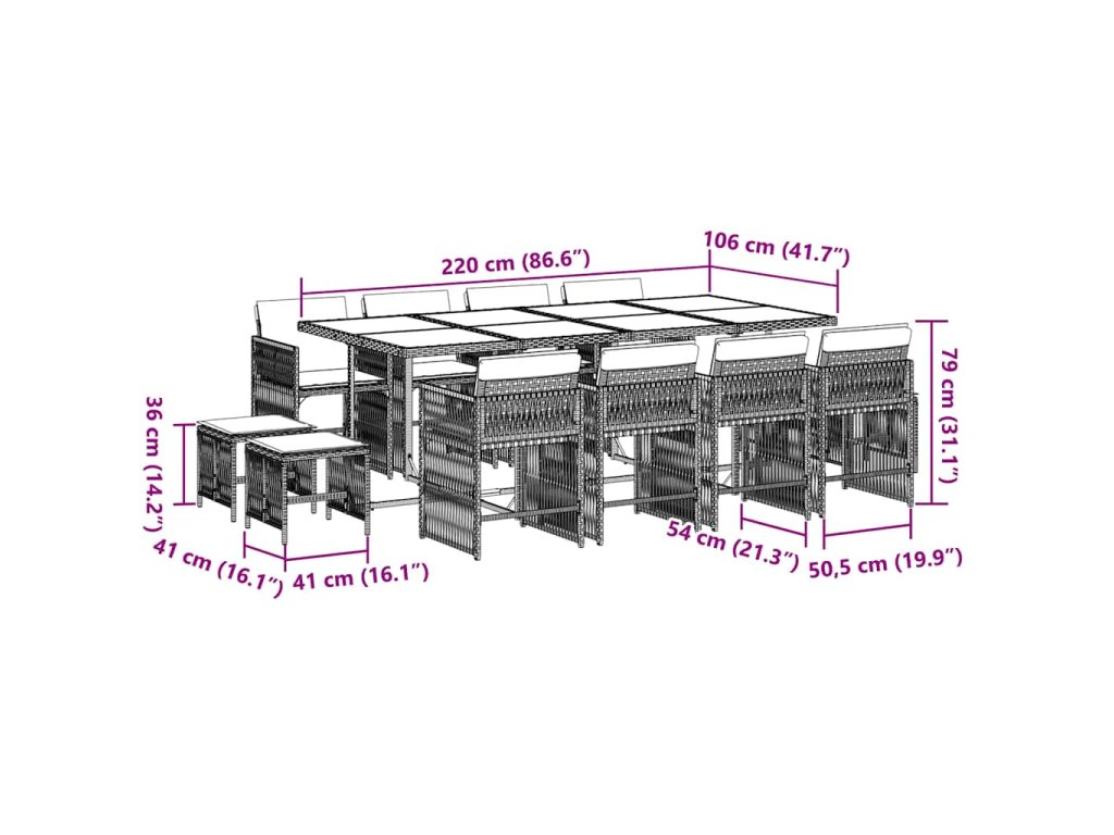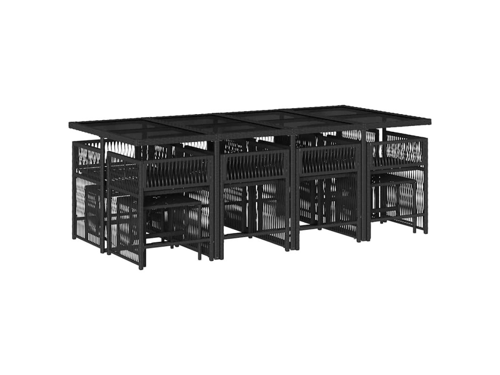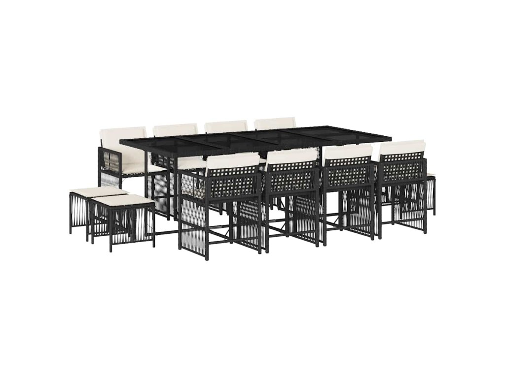 13dílný zahradní jídelní set s poduškami černý polyratan 3211698