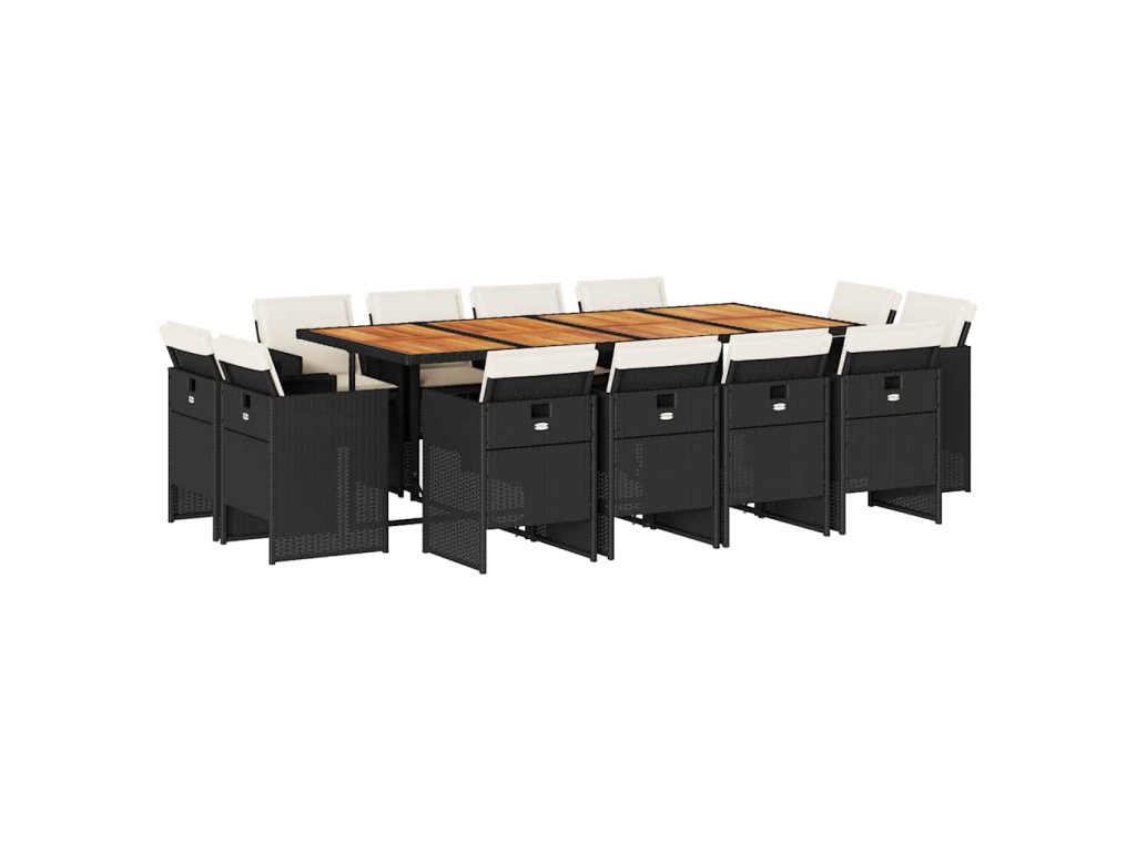 13dílný zahradní jídelní set s poduškami černý polyratan 3277814