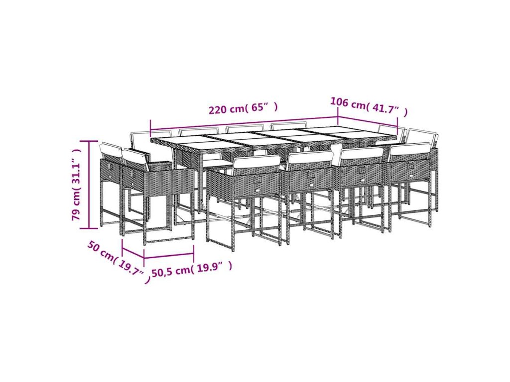 13dílný zahradní jídelní set s poduškami černý polyratan 3278165