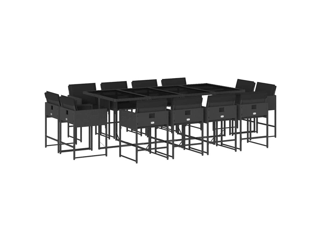 13dílný zahradní jídelní set s poduškami černý polyratan 3278166