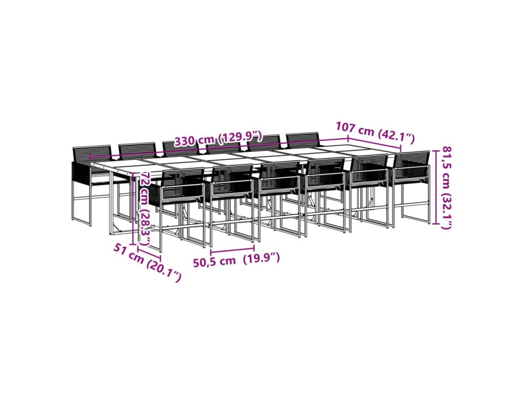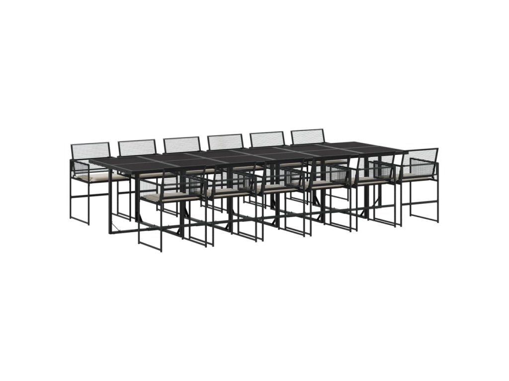 13dílný zahradní jídelní set s poduškami černý polyratan 3295012