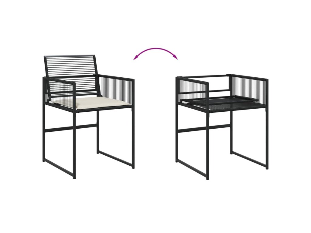 - Kompaktní skladování: Tyto zahradní židle lze úhledně schovat pod stůl a ušetřit tak místo.