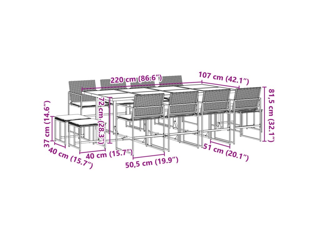 - Robustní a stabilní rám: Ocelový rám s práškovým nástřikem zajišťuje, že zahradní nábytek je pevný a stabilní pro každodenní venkovní použití.