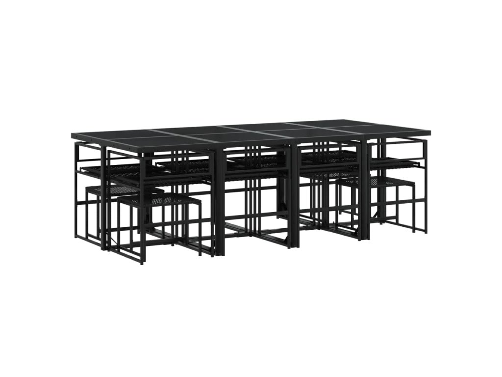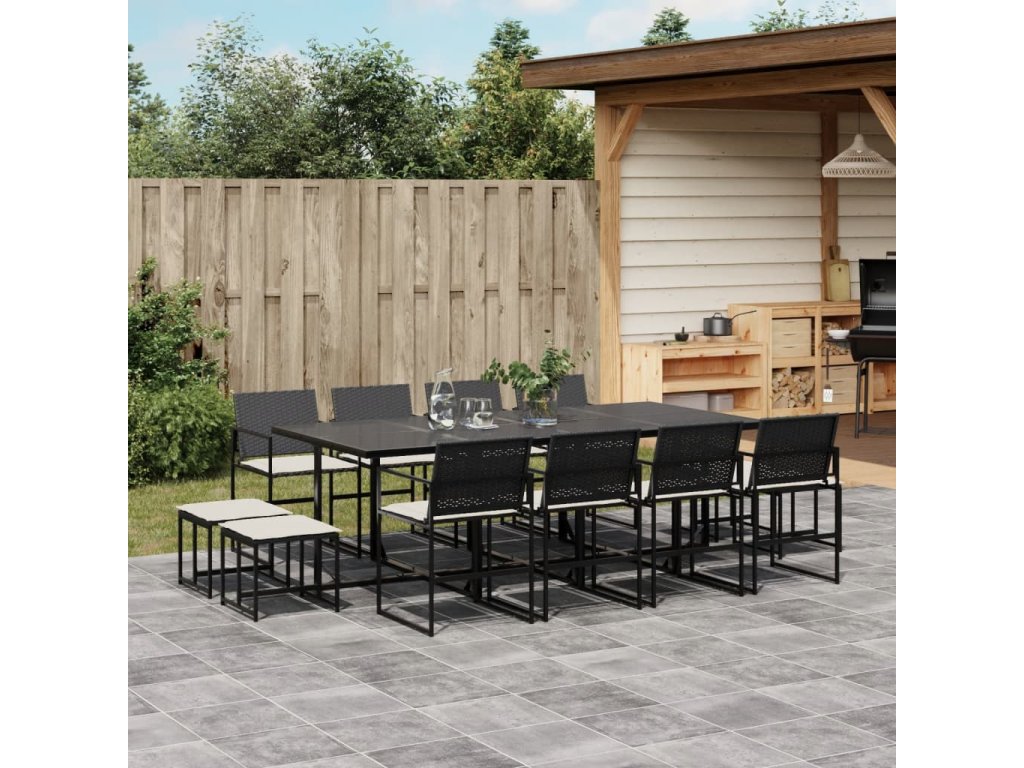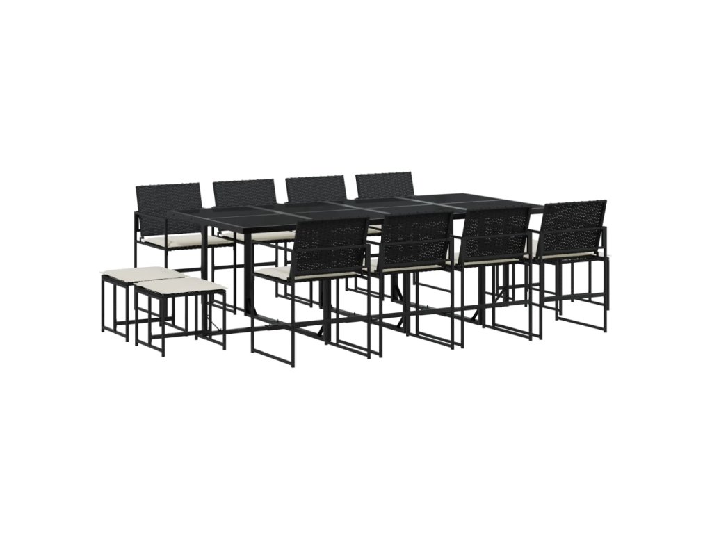13dílný zahradní jídelní set s poduškami černý polyratan 3295070