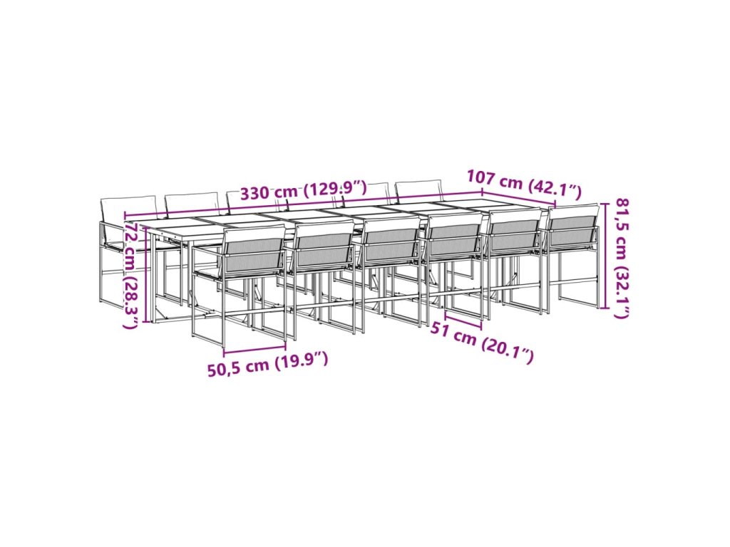 13dílný zahradní jídelní set s poduškami černý textilen 3295077
