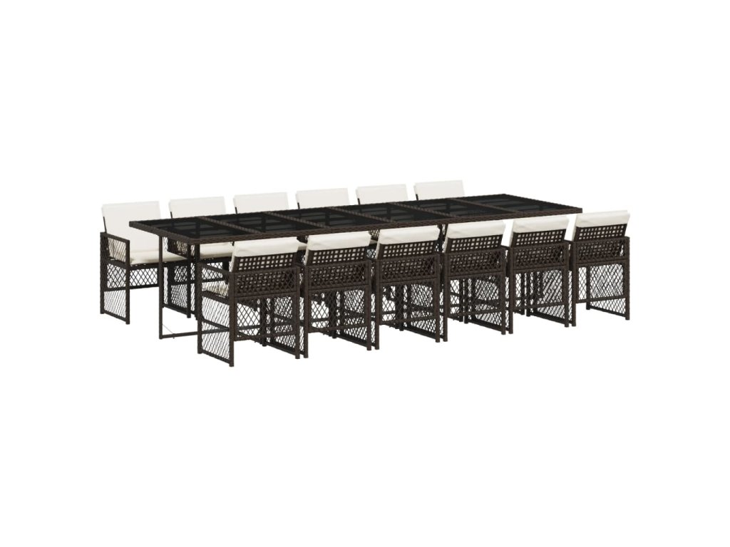 13dílný zahradní jídelní set s poduškami hnědý polyratan 3210765