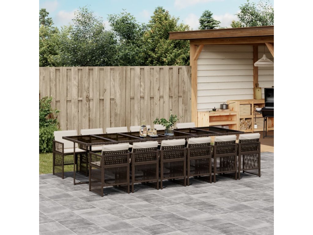 13dílný zahradní jídelní set s poduškami hnědý polyratan 3210945