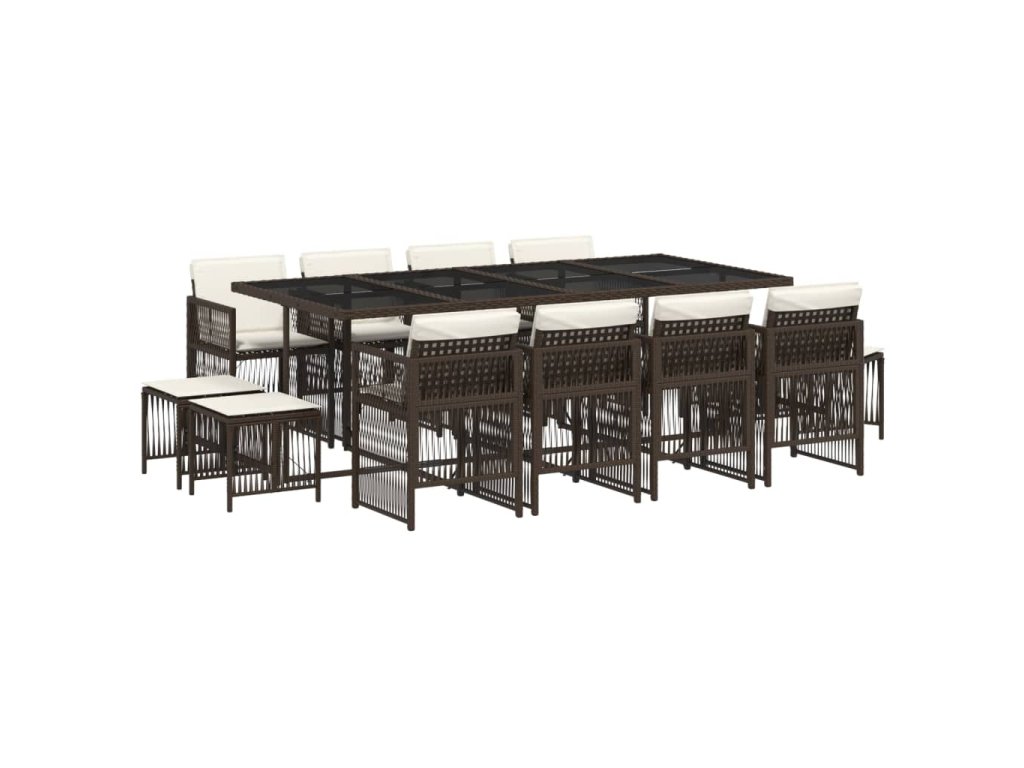 13dílný zahradní jídelní set s poduškami hnědý polyratan 3210981