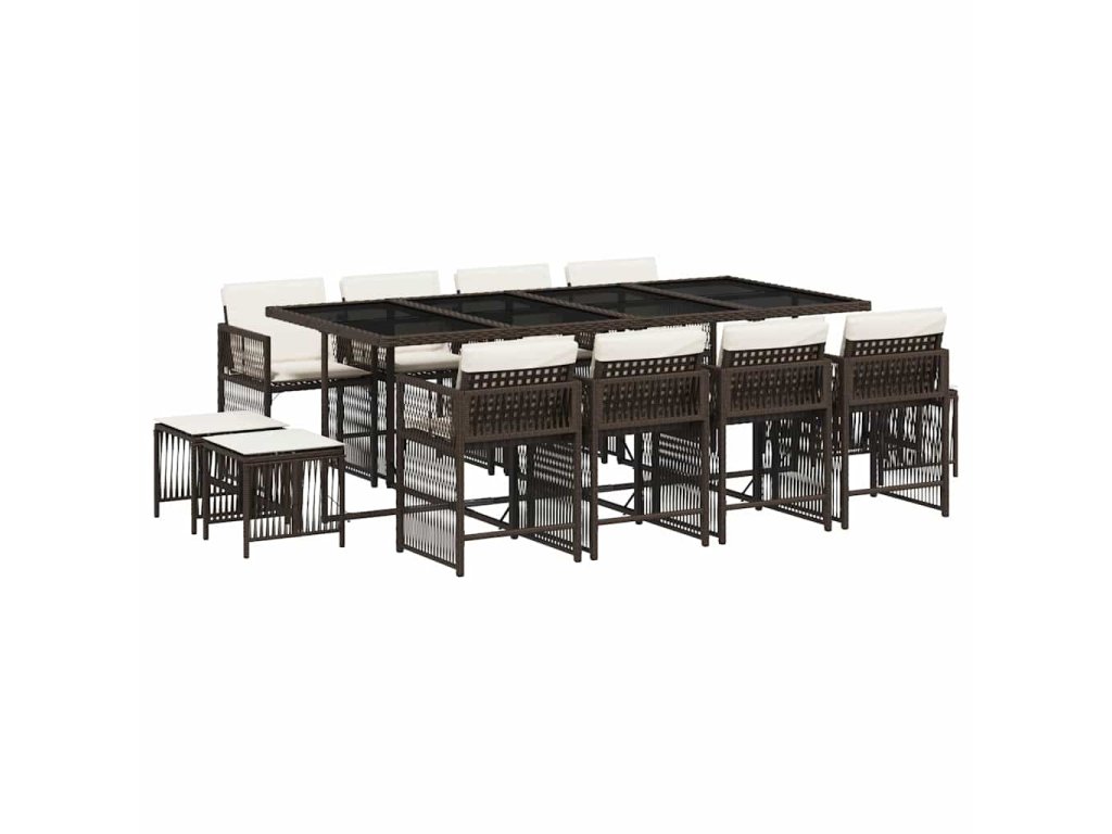 13dílný zahradní jídelní set s poduškami hnědý polyratan 3211701