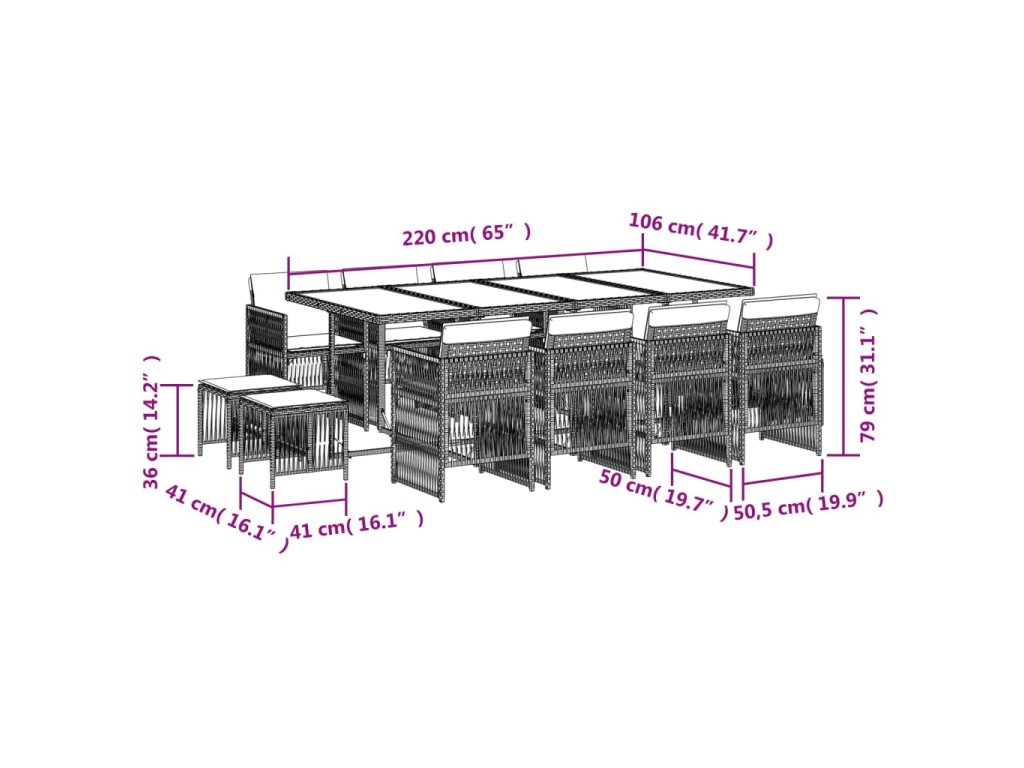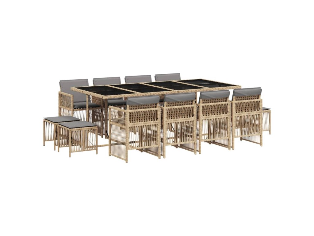 13dílný zahradní jídelní set s poduškami mix béžové polyratan 3210984