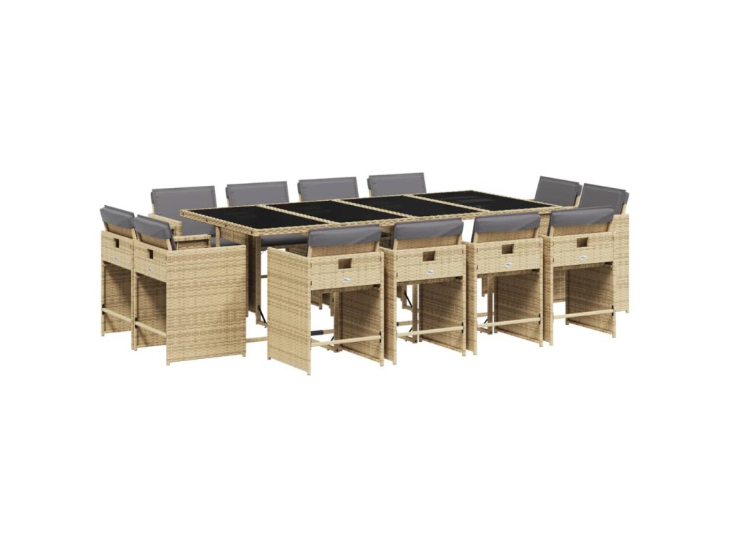 13dílný zahradní jídelní set s poduškami mix béžové polyratan 3211224