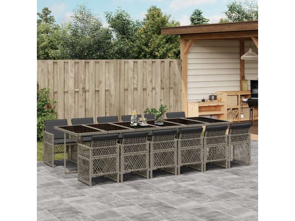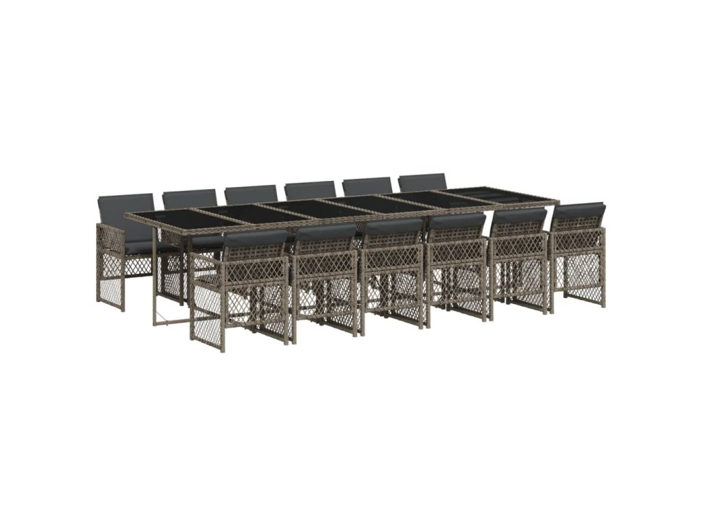 13dílný zahradní jídelní set s poduškami šedý polyratan 3210764