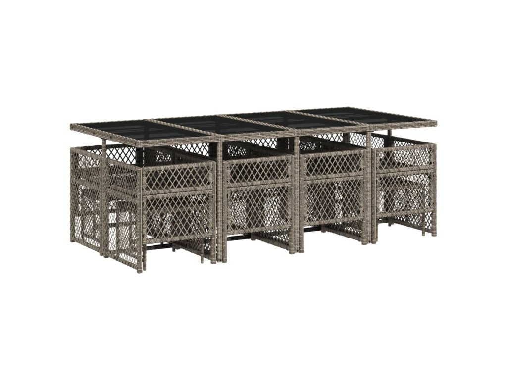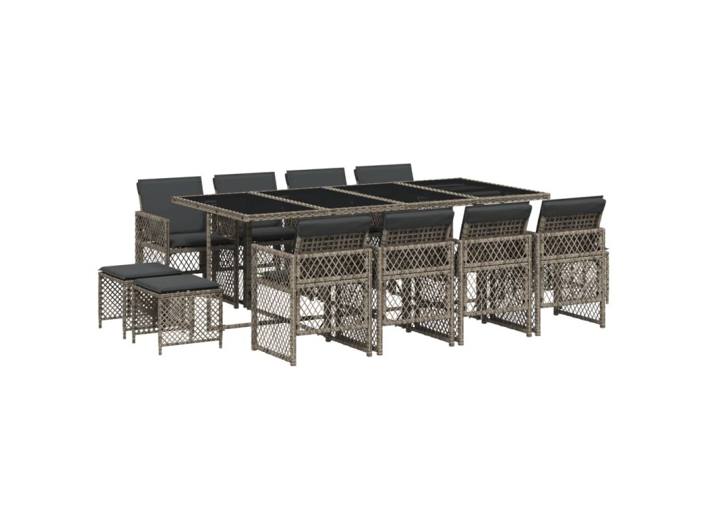 13dílný zahradní jídelní set s poduškami šedý polyratan 3210800