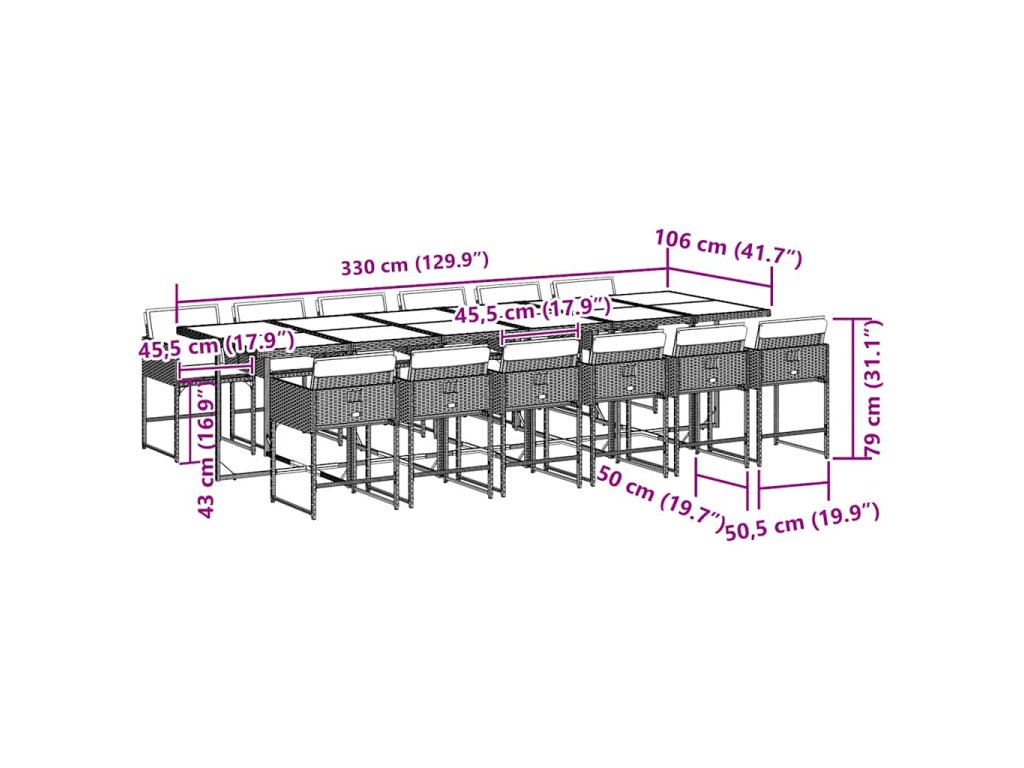 13dílný zahradní jídelní set s poduškami šedý polyratan 3211304