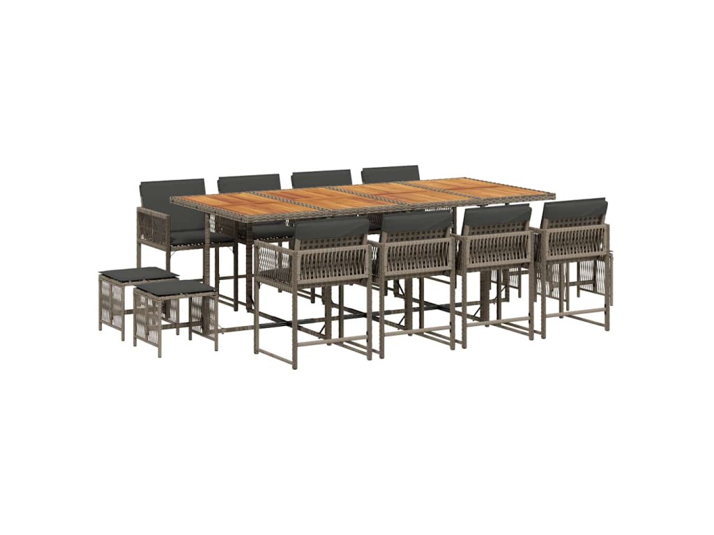13dílný zahradní jídelní set s poduškami šedý polyratan 3211526