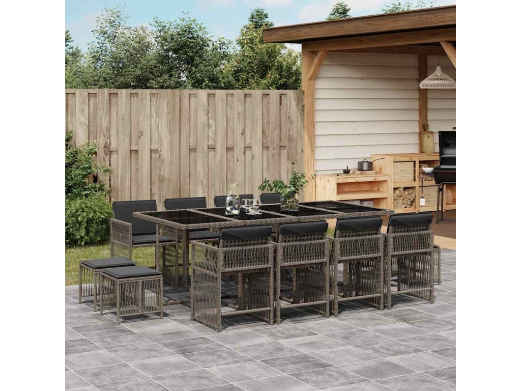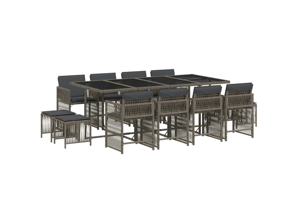 13dílný zahradní jídelní set s poduškami šedý polyratan 3211700